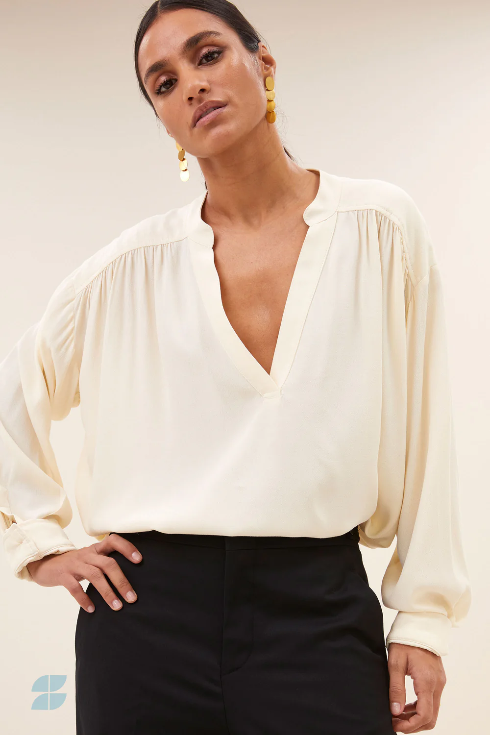 La blouse meja viscose offre un look casual chic avec une coupe confortable et fluide. Grâce à la viscose douce, elle est agréable au toucher, tandis que les détails plissés ajoutent une touche ludique. Parfaite pour tous les jours, avec des manches longues et un décolleté en V qui allient style et confort. Un choix conscient et intemporel, un incontournable dans votre garde-robe !