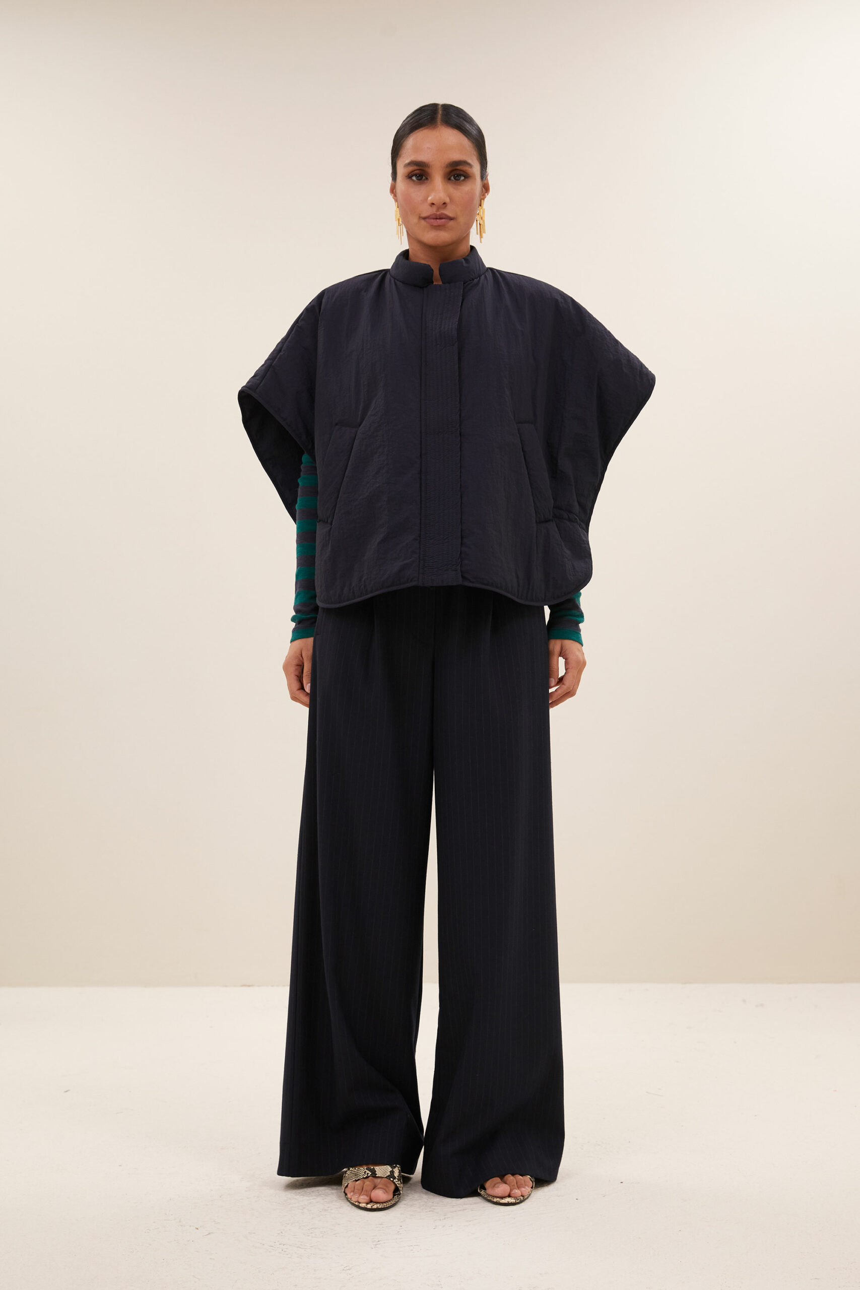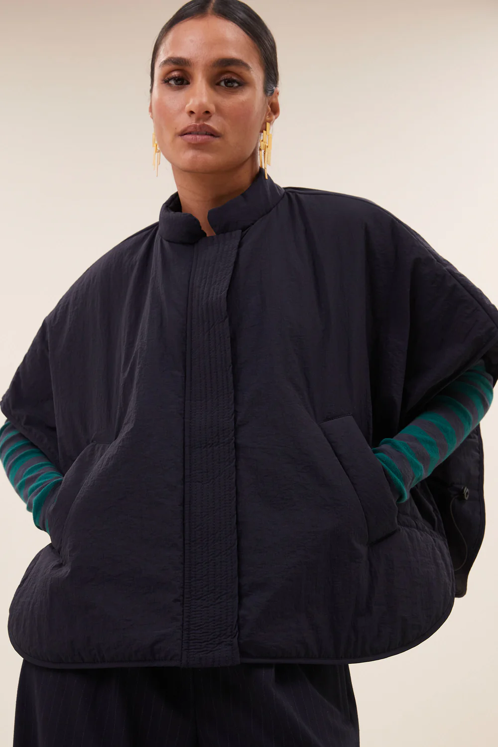 La veste oscar est ton parfait accroche-regard ! Avec une coupe ample qui offre un confort optimal. Grâce au col montant et à la combinaison de la fermeture éclair et des boutons-pression, tu restes élégamment protégé. La veste a des manches courtes et des poches avant pratiques, et est ajustable selon tes envies pour un ajustement parfait. Un manteau polyvalent qui complète ton look sans effort.