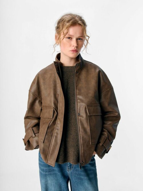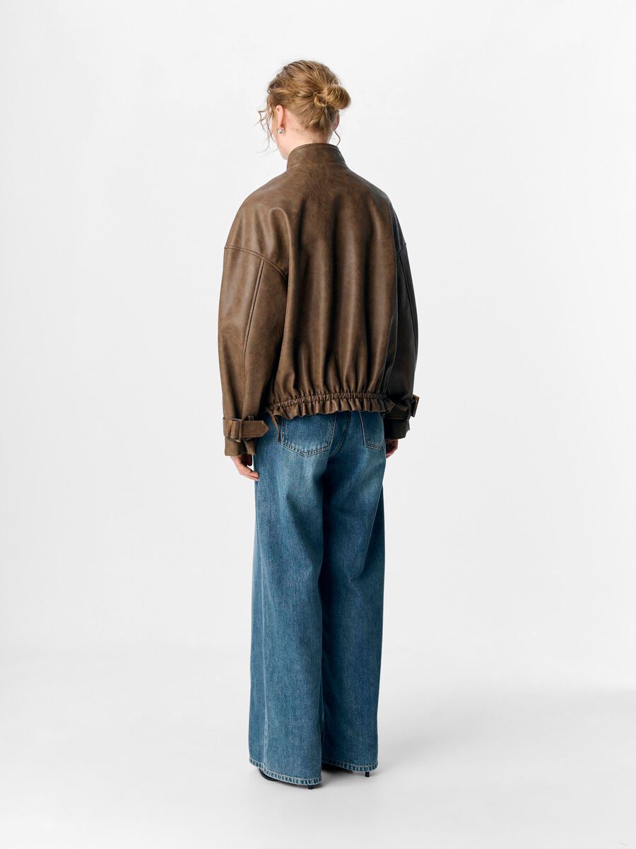 Veste enduite style motard avec col montant