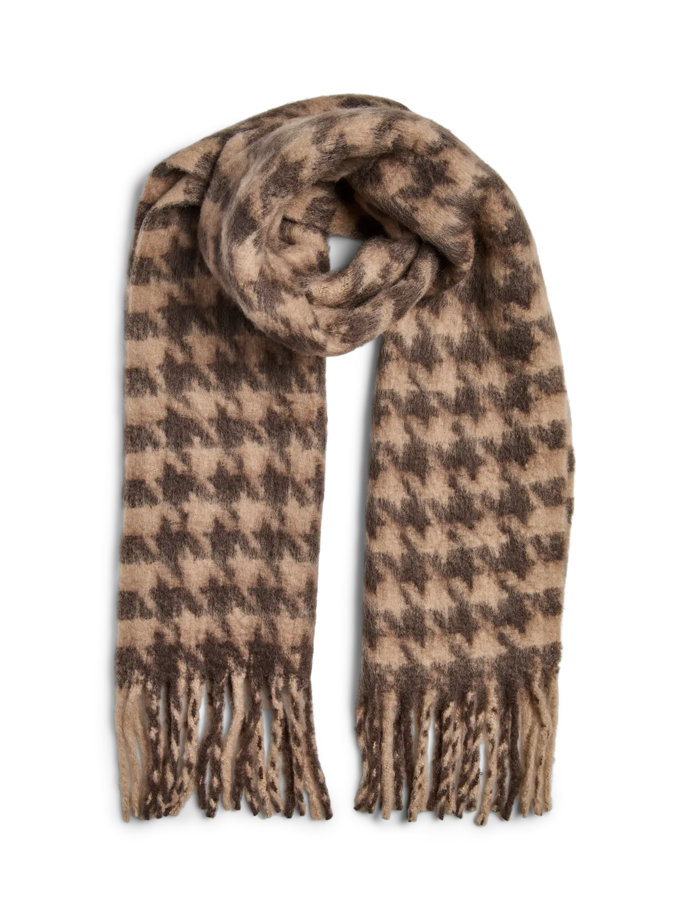 Echarpe marron à motif pied de poule pour femme de la marque Pieces.