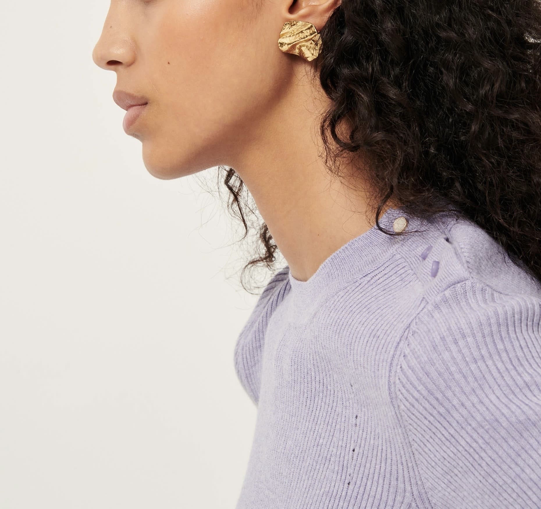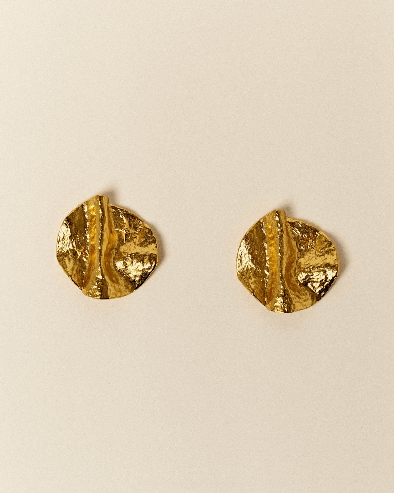 -Boucles d'oreilles pastilles finition dorée avec effet matiéré et reliefs étoilés.