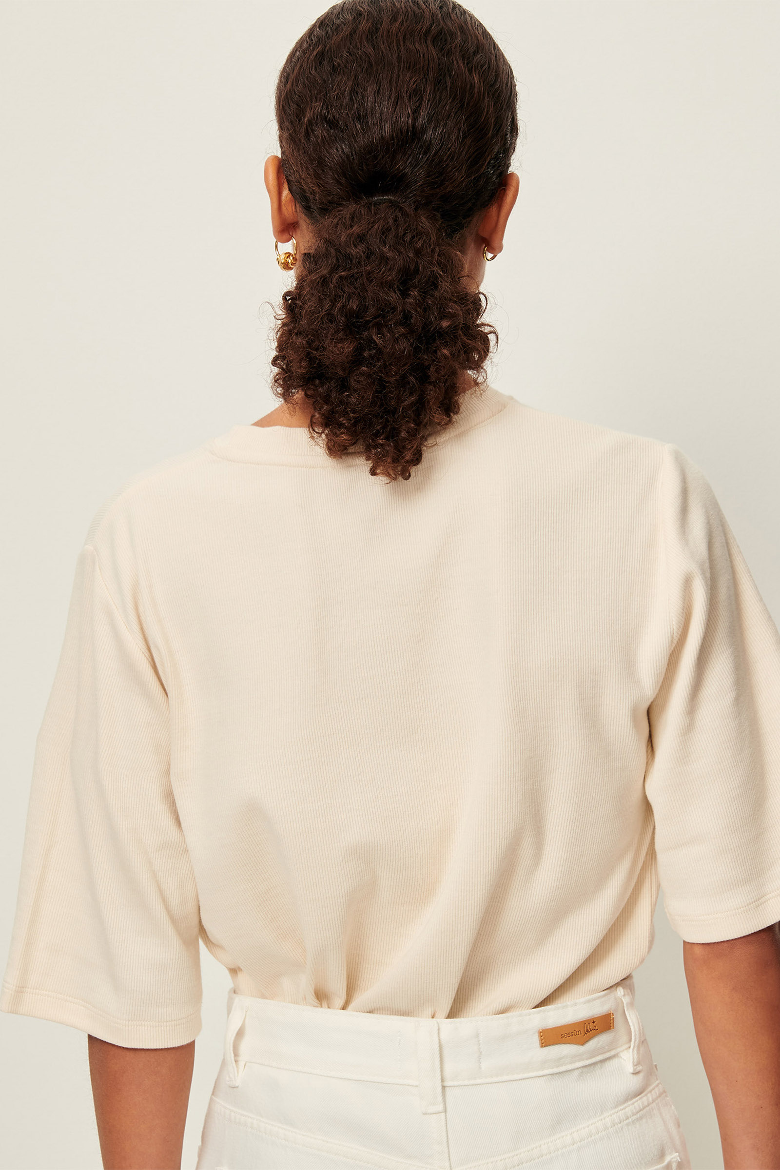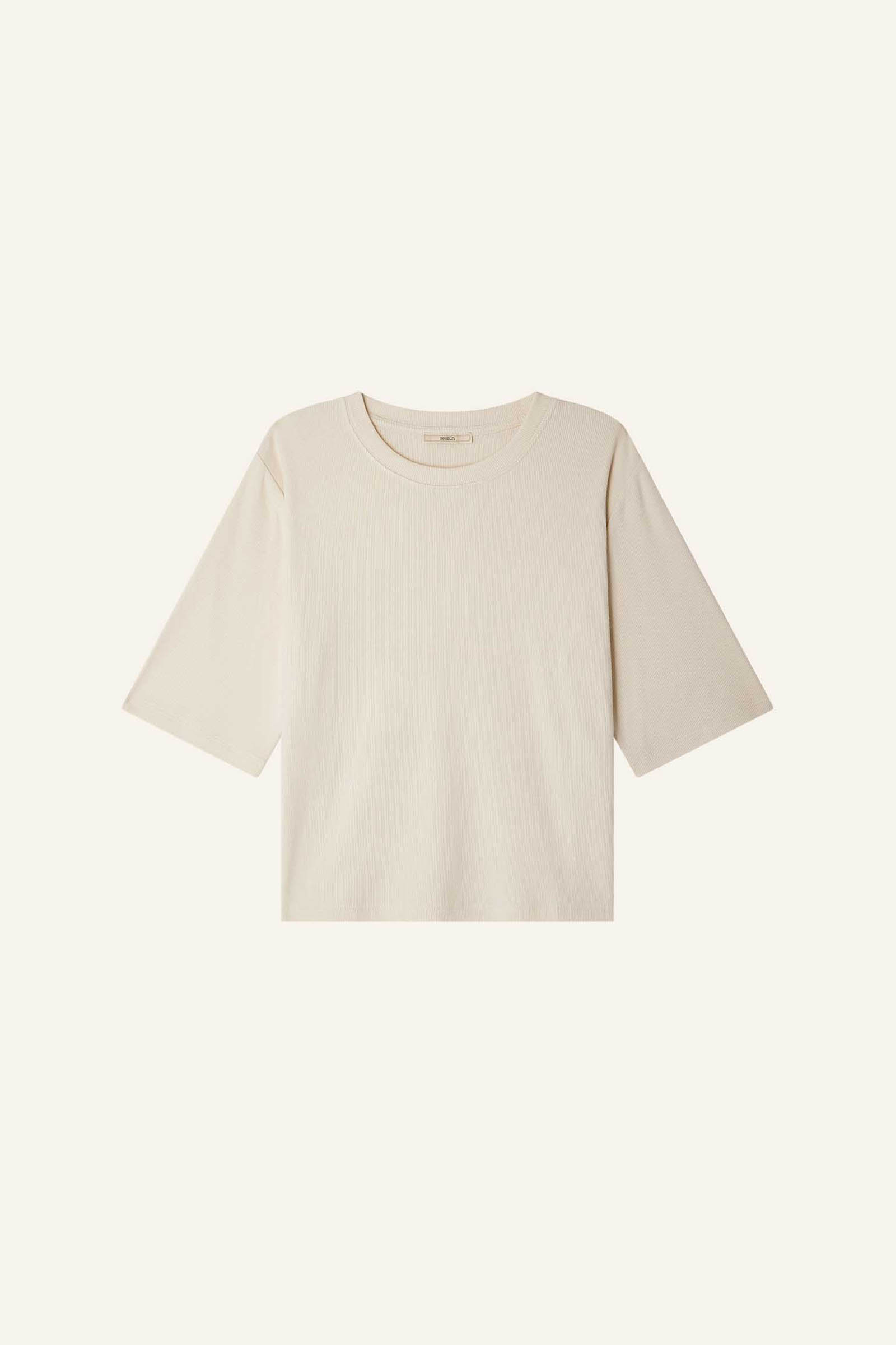 T-shirt ample manches courtes en jersey côtelé.